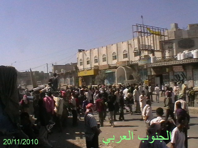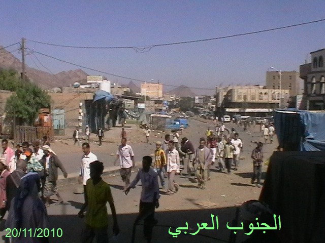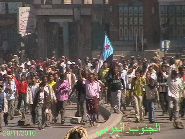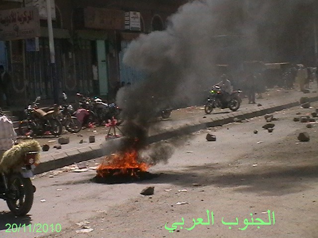بناء على دعوة مجلس الحراك السلمي خرج ابناء البريقا وصلاح الدين في تظاهرة صباح اليوم وقد حملوا الرايات الخضراء واعلام الجنوب وكذلك قامو باحراق اطارات السيارات ومعلنين رفضهم لاقامة خليجي 20 |