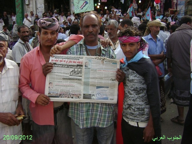 الضالع الناشط عبدالرحيم العولقي في منتدى المهندس القى كلمة توجيهية مشيدا بجهود المناضلين من ابناء الضالع وماقدمته الضالع من النضال ضد المحتل اليمني المتخلف وناشد القيادات الجنوبية في الداخل والخارج الى التوحد من اجل هدف واحد وهو هدف وخيار شعب الجنوب الذي لارجعة عنه وقال ادعوا كل القيادات ان يكونوا واضحين كالرئيس علي سالم البيض الذي لم يكون له اي موقف متذبذب ومايزال على موقفه الثابت مع خيار شعب الجنوب في التحرير والاستقلال |