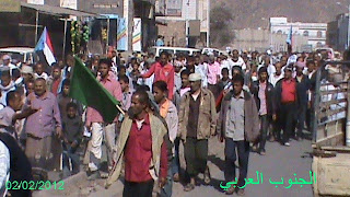خرجت مسيرة جماهيرية حاشده هي الاكبر من نوعها بالحد يافع جابت الشارع العام لعاصمة المديرية بني بكر رافعه اعلام دولة الجنوب وصور الزعيمين الرئيس علي سالم البيض والزعيم حسن باعوم