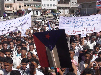مسيرة الغضب اليوم بردفان احتجاجا على اغتيال الشهيد فارس محمد احمد اليافعي ـــــــــــــــــــــــــــــــــــــــــــــ انطلقت مسيرة الغضب اليوم بردفان الموافق 2/5/2010 من جولة مفرق يافع رافعه صور الشهداء والمعتقلين وصور الرئيس البيض ولافتات كتب عليها عهدا للشهداء والموت والعار للجبناء.....دماء الشهداء لن تذهب هدرا وقد انطلقت المسيرة وهم يرددون الشعارات الجنوبية ألمطالبه بالاستقلال وفك الارتباط عن الجمهورية العربية اليمنية وفي منصة الشهداء بدئت الفعالية بأية من الذكر الحكيم وألقيت عدد من القصائد الشعرية لكل من شاعر الثورة السلمية الجنوبية محمد احمد بن شجاع والشاعر فهد بن جعموم والطفل رعد الحالمي والشاعر ابو هند اليافعي والشاعر فضل ناجي أبو نادر وعن اسرة الشهيد القى ناجي فاضل كلمة اسرة الشهيدة الحي فارس محمد احمد اليافعي وكلمة عن مجلس الحراك السلمي م/ لحج للدكتور ناصر الخبجي هذا وقد حضر مسيرة الغضب هذه كلن من العميد المناضل محمد صالح طماح والمناضل علي منصر محمد والعميد علي حسين زكي والمناضل عوض الصلاحي ومحمد سعيد عفيف والعميد المناضل قاسم الدعري وقيادات الحراك السلمي محافظة لحج http://3.bp.blogspot.com/_XBs9A3YH9g...Q34/s400/1.JPG http://2.bp.blogspot.com/_XBs9A3YH9g...iMA/s400/2.JPG http://2.bp.blogspot.com/_XBs9A3YH9g...GFw/s400/3.JPG http://1.bp.blogspot.com/_XBs9A3YH9g...E0w/s400/4.JPG http://2.bp.blogspot.com/_XBs9A3YH9g...eWs/s400/5.JPG http://2.bp.blogspot.com/_XBs9A3YH9g...xig/s400/7.JPG |