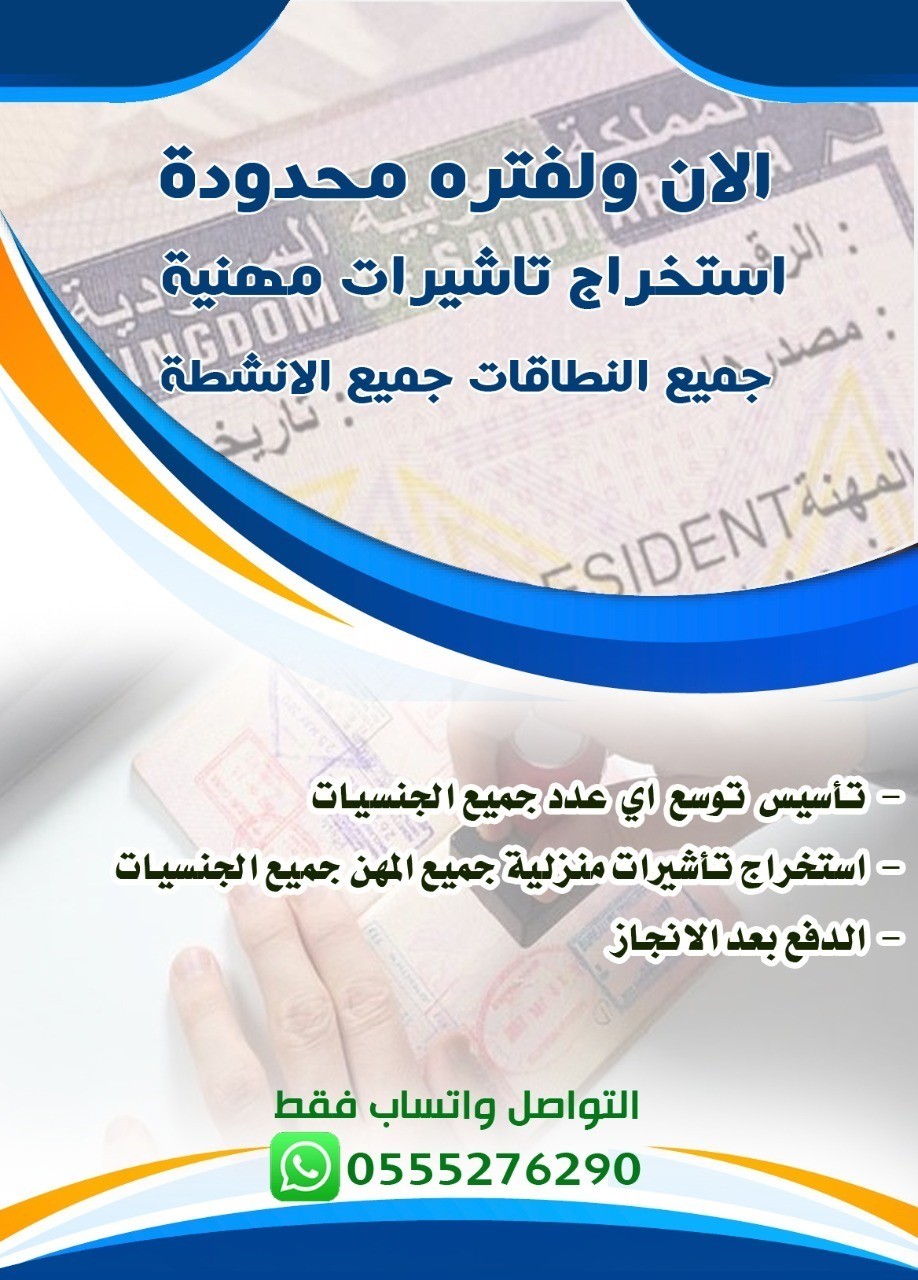 https://i.suar.me/JPP54/l الان ولفتره محدودة استخراج تاشيرات مهنية جميع النطاقات جميع الانشطة تاسيس توسع اي عددجميع الجنسيات استخراج تاشيرات منزليه جميع المهن جميع الجنسيات الدفع بعد الانجاز التواصل واتساب فقط https://api.whatsapp.com/send?phone=00966555276290 |