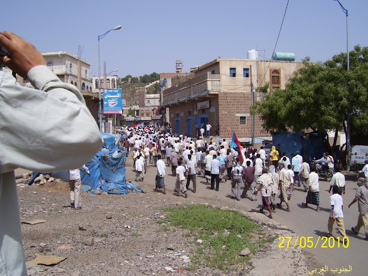 ![]() الولا :الف شكر وتحيه لخوكم الشيبه على ما يقدمه من ابداع في التقاط الصور وموافاتنى بها 27 مايو, 2010تحيه لك ولوفائك ايها الصنديد ,,,,,,,,, الضالع مسيره حاشده في 27مايو2010م خرج ابناء الضالع في مسيره حاشده تردد شعارات الجنوب العربي برع برع ياستعمار من ارض الاحرار ياسنحاني ياخسيس دمنا ماهوه رخيص -برعبرع ياستعمار سلميا او بالنار-ياعلي ياجوه لا وحده بالقوه وقد اطلقت قوات الامن الاعيره الناريه لتفريغ المتظاهرين الا انها لم تستطيع تفريغ المتظاهرين واستمرت ةالمظاهره تجوب شوارع مدينة الضالع لمشاهدة كل الصور |