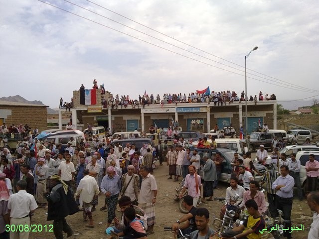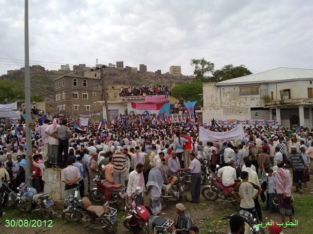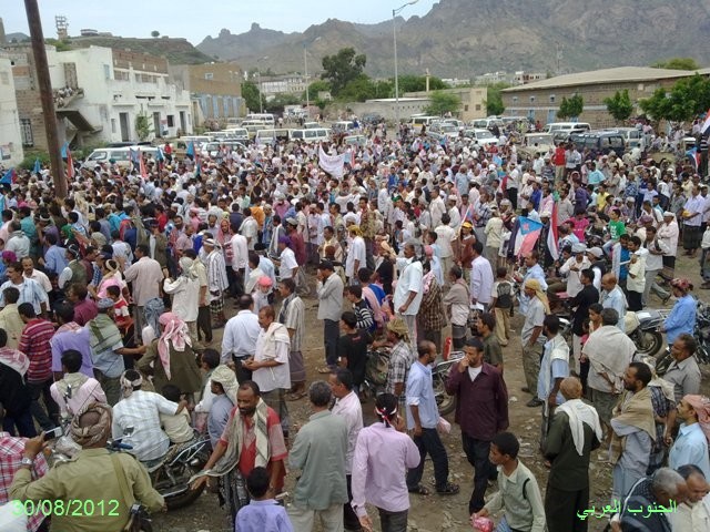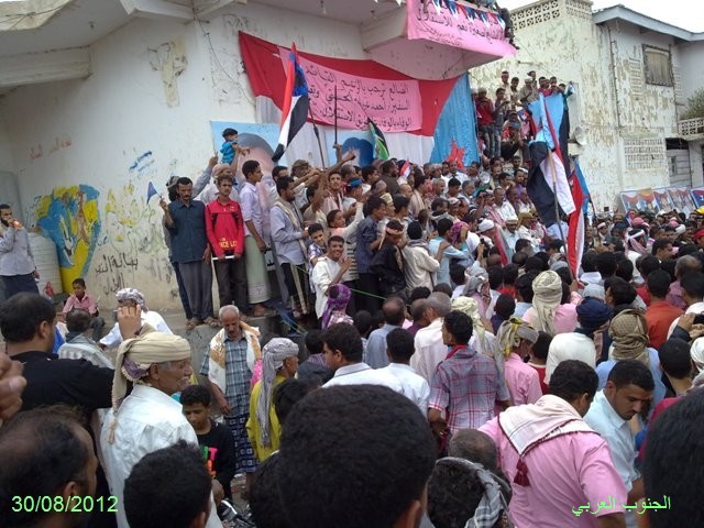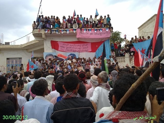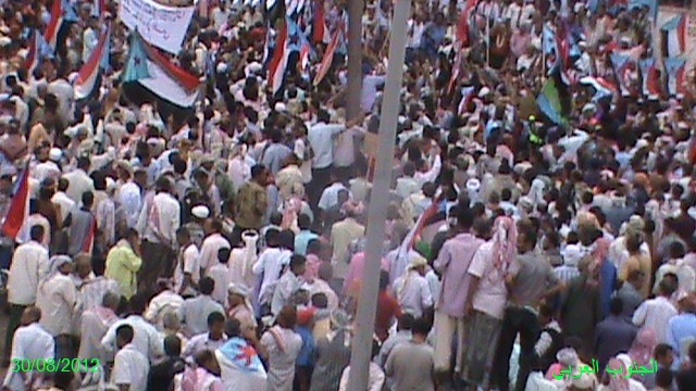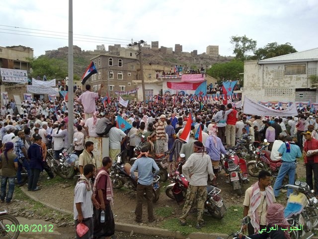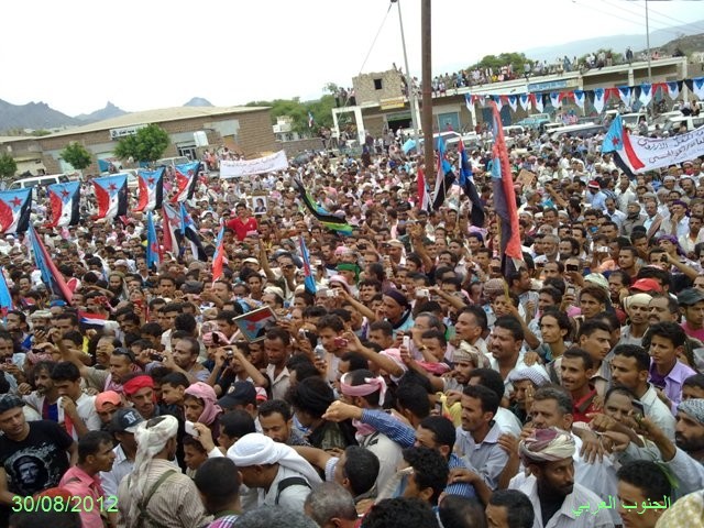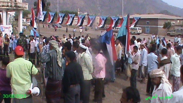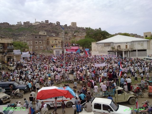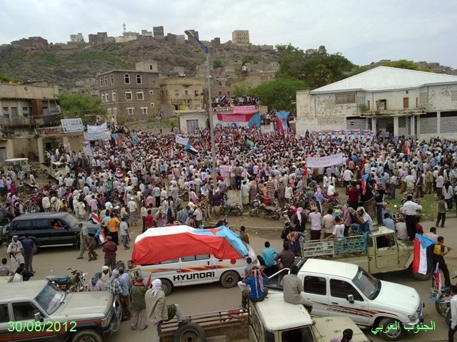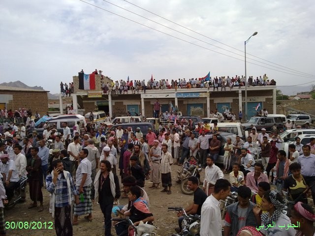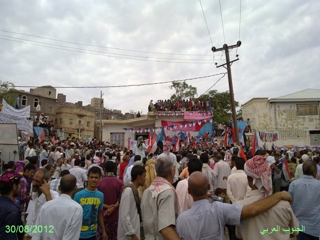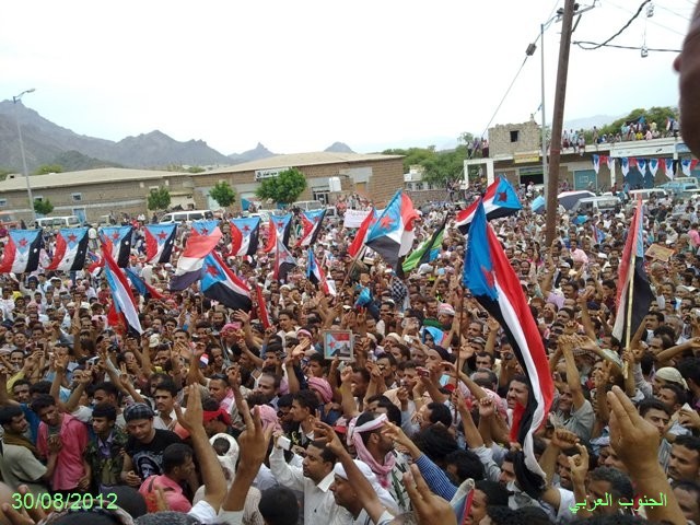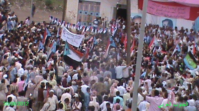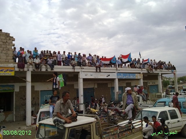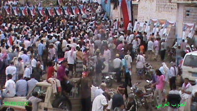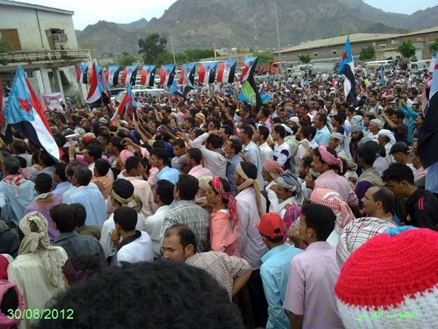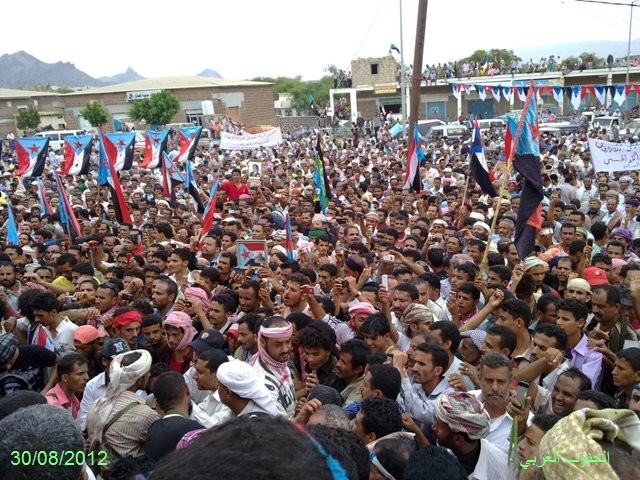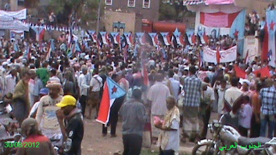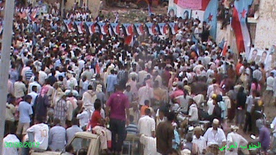 كالعادة تواصلت التظاهرات الحاشدة بمدينة عتق عاصمة المحافظة المؤكدة على التحرير والاستقلال واحياء لذكرى يوم الاسير الجنوبي وقد انطلقت التظاهرة من ساحة الحرية والاستقلال رافعة الاعلام الوطنية الجنوبية وصور الشهداء والمعتقلين ومرددة الشعارات الجنوبية المؤكدة على التحرير والاستقلال واستعادة الدولة وعادت التظاهرة إلى ساحة الحرية والاستقلال حيث طالبت الجماهير المحتشدة السلطات اليمنية والسعودية باطلاق سراح المعتقلين الجنوبيين في اراضيها مؤكدين السير على ماسار علية شهداء الجنوب .. ورغم أرتفاع درجة الحرارة إلا انها لم تعيق الجماهير من الاستمرار