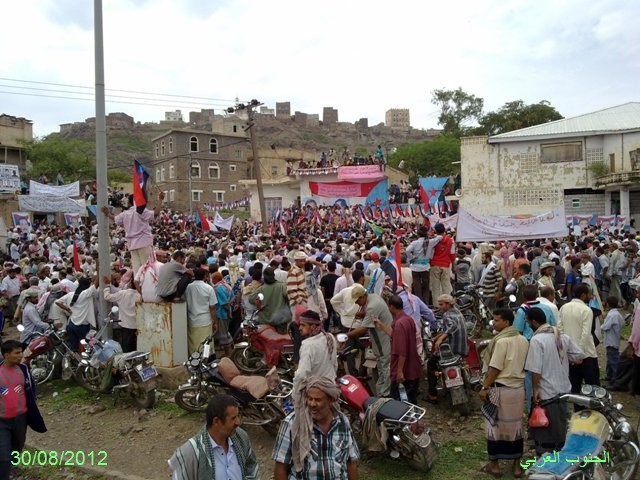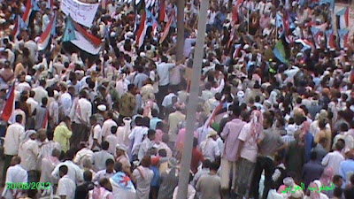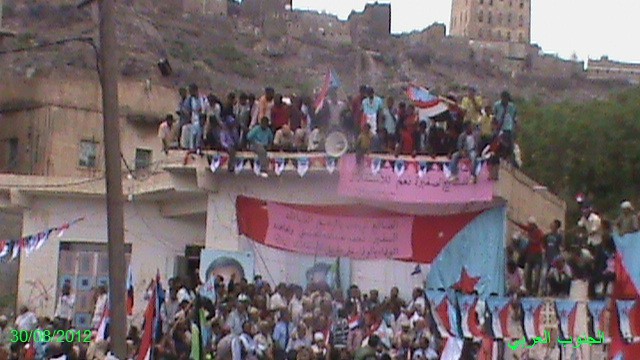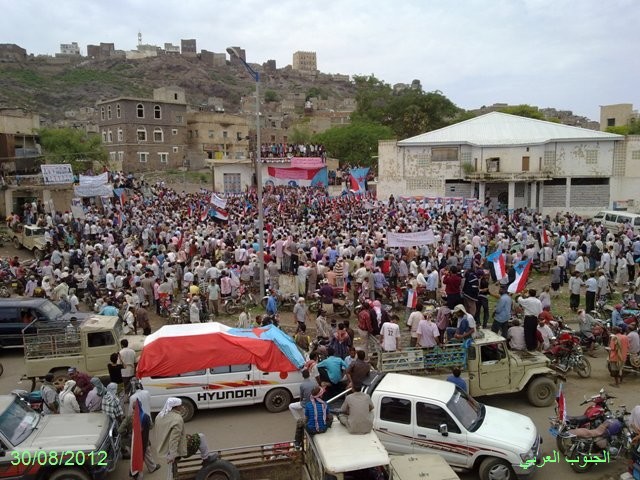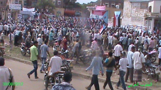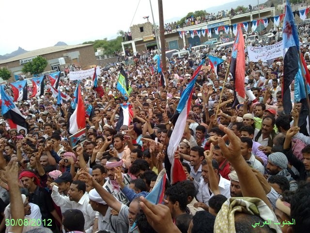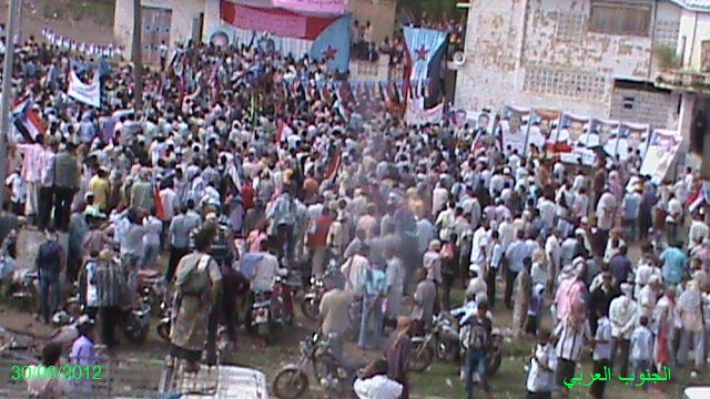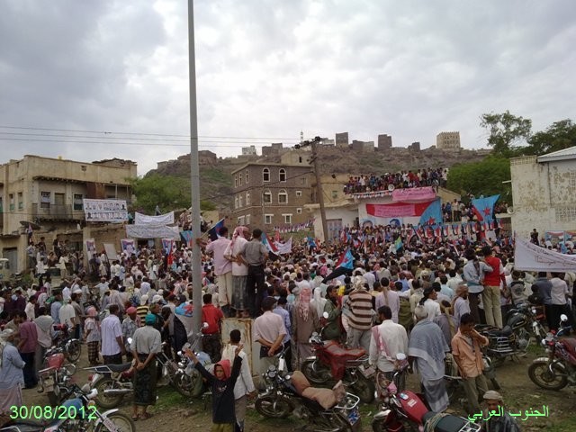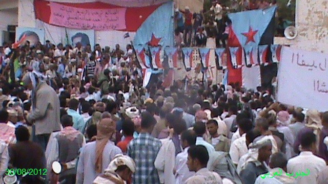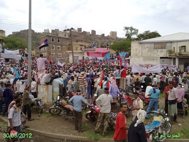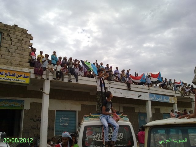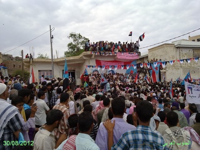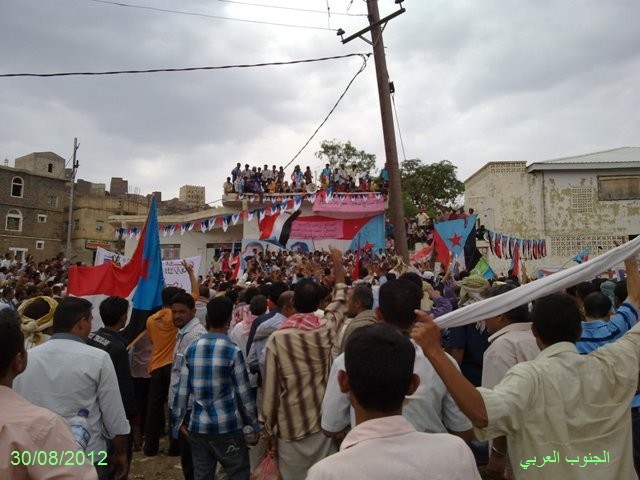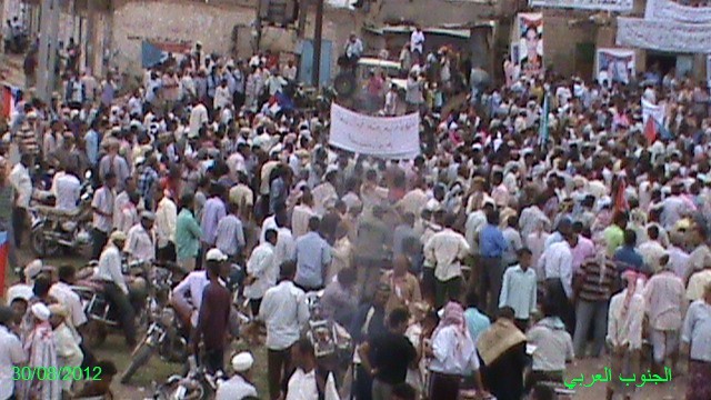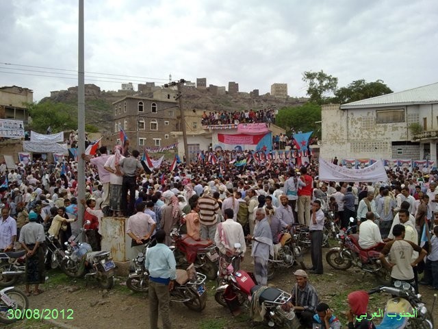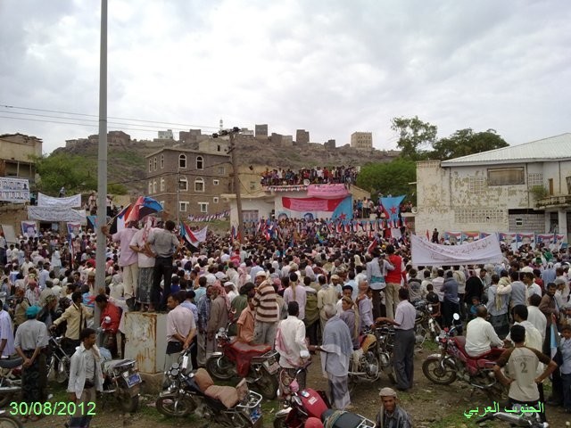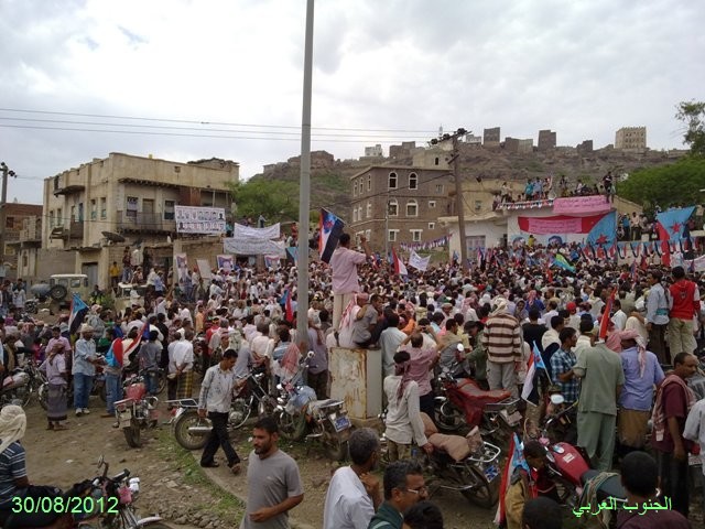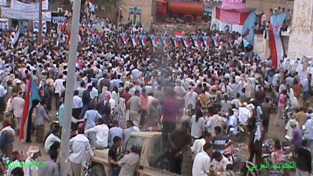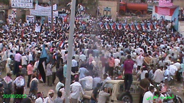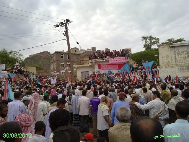 كالعادة تواصلت التظاهرات الحاشدة بمدينة عتق عاصمة المحافظة المؤكدة على التحرير والاستقلال واحياء لذكرى يوم الاسير الجنوبي وقد انطلقت التظاهرة من ساحة الحرية والاستقلال رافعة الاعلام الوطنية الجنوبية وصور الشهداء والمعتقلين ومرددة الشعارات الجنوبية المؤكدة على التحرير والاستقلال واستعادة الدولة وعادت التظاهرة إلى ساحة الحرية والاستقلال حيث طالبت الجماهير المحتشدة السلطات اليمنية والسعودية باطلاق سراح المعتقلين الجنوبيين في اراضيها مؤكدين السير على ماسار علية شهداء الجنوب .. ورغم أرتفاع درجة الحرارة إلا انها لم تعيق الجماهير من الاستمرار
