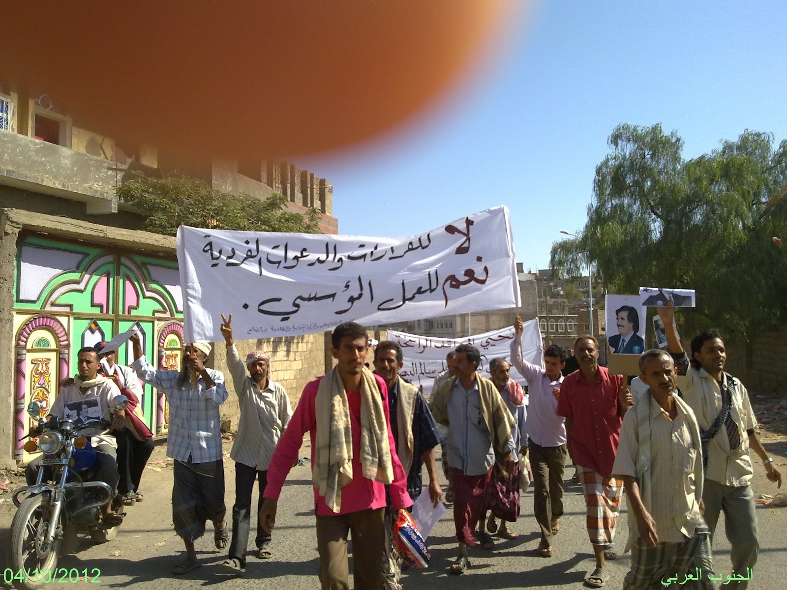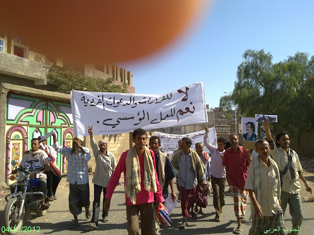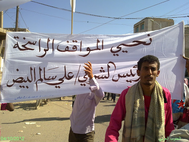 نظم مجلس الحراك السلمي وقطاع الشباب والطلاب م ميفعة مهرجان ومسيرة حجماهيرية حاشدة بمناسبة يوم الاسير الجنوبي ومواصلة معركة التحرير وطرد المحتل اليمني ,وهذا وقد حضر عدد من قيادات المجس نظم مجلس الحراك السلمي وقطاع الشباب والطلاب م ميفعة مهرجان ومسيرة حجماهيرية حاشدة بمناسبة يوم الاسير الجنوبي ومواصلة معركة التحرير وطرد المحتل اليمني ,وهذا وقد حضر عدد من قيادات المجس الحراك وقطاع الشباب م ميفعة م الروضة والشيخ احمد ناصر باعوضة نائب رئس المجلس الاعلى للحراك الجنوبي م شبوة ,وهذا واكد باعوضة في كلمتة على العمل على توحيد فصائل ومكونات الثورة الجنوبية ,والحذر من اشاعات المحتلين وعملائهم ,وهذا ودعاء الى تكثيف مثل هذا المهرجانات والخروج لشوارع في عموم مدن وحواضر الجنوب المحتل وتصعيد النضال حتى طرد المحتلين. http://sphotos-e.ak.fbcdn.net/hphoto...47474535_n.jpg |
