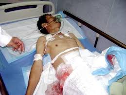 انا لم اشاهده بالتلفزيون على البي بي سي ولكن من الاسم يبدو انه صاحب الصوره الشهيره:rolleyes: وبما اني اعرف والده اسمه عبدالله مطلق حسن احد مناضلي ثورة 14 اكتوبر تعرض للظلم من قبل الاشتراكيين في فترة حكمهم والان هو على ما اعتقد عضو في مجلس الشورى وعضو للجنه العامه للمؤتمر الشعبي العام واخو عادل عبدالله مطلق يشغل مأمور حبيل جبر في ردفان حالياً وقد تعرض عدة مرات للاغتيال ولتهشيم سيارته من قبل مجهولين واخوهم عادل هو صاحب الطعنه الشهيره التي في الصوره من قبل مستوطنين وناهبي ثروات الجنوب الموضحه اذا لم اكن مخطأ رغم اني لا اعتقد ذلك واضنه صاحب الصوره فعلاً . صوره توضح عادل مطلق مضرج بالدماء في عمليه طعن بالجنبيه من قبل ناهبي ثروات الجنوب |