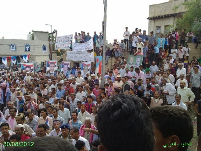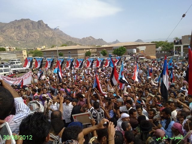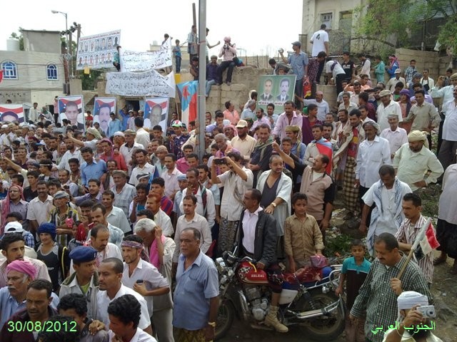 كالعادة تواصلت التظاهرات الحاشدة بمدينة عتق عاصمة المحافظة المؤكدة على التحرير والاستقلال واحياء لذكرى يوم الاسير الجنوبي وقد انطلقت التظاهرة من ساحة الحرية والاستقلال رافعة الاعلام الوطنية الجنوبية وصور الشهداء والمعتقلين ومرددة الشعارات الجنوبية المؤكدة على التحرير والاستقلال واستعادة الدولة وعادت التظاهرة إلى ساحة الحرية والاستقلال حيث طالبت الجماهير المحتشدة السلطات اليمنية والسعودية باطلاق سراح المعتقلين الجنوبيين في اراضيها مؤكدين السير على ماسار علية شهداء الجنوب .. ورغم أرتفاع درجة الحرارة إلا انها لم تعيق الجماهير من الاستمرار