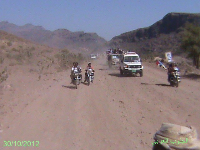 مدينة سيئون تشيع الشهيد علي محمد الحبشي في موكب جنائزي مهيب ففي حضرموت شيعت مدينة سيئون الشهيد علي محمد الحبشي في موكب جنائزي مهيب من بيته الكائن في حي القرن حتى ساحة الرياض حيث ألقيت بساحة الرياض كلمات احتجاجية عبرت عن شبجبها واستنكارها لحالة الانفلات الأمني التي تستباح خلالها النفس البشرية التي حرمها الله مستعرضة شيئاً من ذكريات هذه المدينة الآمنة المطمئنة التي لم تكن تعرف أي من هذه الجرائم التي باتت اليوم النفس المال والولد كلها مستباحة ودن رادع اوحسيب . ثم أقيمت الصلاة على روحة الطاهرة التي حرصت جميع الأوساط الاجتماعية على تأديتها وحضور مراسيمها حتى ووري جثمانه الطاهرة الثرى بمقبرة مقام الحبشي وسط مدينة سيئون هذا ويُذكر أن الشهيد علي محمد الحبشيت عرضمساء الجمعة الموافق 27 أكتوبر 2012مللهجوم بالرصاص الحي قبالة بيته في لحظة عودته للبيت بمعية زوجته وأحد أطفاله بعد تأديته واجب المعايدة العائلية حيث هاجمة المسلح بطلقة نارية قاتلة أردته على الأرض مغشياً عليه أمام زوجته وطفله حيث تمكنت شجاعة الزوجة من إغلاق محرك السيارة وإخفاء المفاتيح بما أعاق الجاني من الصعود والفرار بالسيارة . ويعد الشهيد ناشط مدني ومشارك في تنفيذ برامج للتوعية بالجوانب الصحية منسق عام منظمة وايجير بوادي حضرموت علاوة على أنه يعمل مدرساً للغة الإنجليزية وشخصية اجتماعية تحظى بالقبول والعلاقات الأخوية الواسعة ، وهو من مواليد مدينة سيئون ويبلغ من العمر 32عاماً متزوج حديثاً وله من الأبناء ولد وبنت وكان متهيئاً لولادة طفله الثالث الذي شاءت قدرة الله أن لايدرك ولادته . وفي سياق اخر وضمن الإحتفالات العيدية نُظمت بمدينة سيئون في ثالث أيام عيد الإضحى المبارك يوم الأحد الموافق 29 إكتوبر 2012م فعاليات رياضية فكاهية هي الأولى من نوعها على مستوى وادي حضرموت حيث تألفت من عدة ألعاب رياضية لكبار الاجسام - لكبار الأجسام وليس كمال الأجسام - . وقد جرت فعاليالتها على أرضية ملعب كرة الطائرة بمنشآت نادي سيئون وتعددت ألعابها الرياضية والتي دُشنت بمبارة في كرة القدم وألعاب ترفيهية والعاب مائية تفاعلت معها الحشود الجماهيرية الكبيرة التي حرصت على إحيائها لهذه الفعاليات النوعية . هذا وقد تخلل هذة الفعاليات وقفة حداد إحتجاجية على روح الشهيد على محمد الحبشي تعبيرا عن الحزن على فقدان الشهيد والاحتجاج على حالة الانفالات الامنى التى تشهدها محافظات الجنوب . العيد بمديرية تريم يمتزج بالطابع الثوري الجنوبي حيث شهدت..اوبريت ..قصة من الزمن.. وفي حضرموت أيضاً عاشت مدينة تريم أجوائها الاحتفالية الفلكلورية المعهود إحيائها بمناسبة عيد الأضحى المبارك من كل عام حيث شهدت مدينة تريم عصر الجمعة يوم العيد الأكبر زخماً جماهيرياً واحتفالياً كبيراً امتزج بالطابع الجنوبي الثوري المتميز لان أبناء تريم متفانون ومتميزون في كل ما يخص قضيتهم الجنوبية . اوبريت قصة من الزمن يتحدث عن الواقع الذي يعيشه الشعب الجنوبي بداية الاوبريت بدا بفكرة بعض الشباب من فرقة ابو مقبل للألعاب الشعبية بمدينة تريم تطورت الفكرة وحملوا على عاتقهم إيصال معاناة شعبهم بطريقة جميلة معبرة نالت استحسان الجميع امتزج الابريت وتخلل فقراته الفن الحضرمي الأصيل من لعبة الشبواني إلى الزربادي وغيرها حيث جاء في إحدى فقرات الابريت مقطوعة من ردده بالدان الحضرمي ويقول فيها الشاعر والله مادنيت لمن كان ظالم ويعين الضبم باجرعة له مر قاطع من عاب في ذا الوطن ومن عاب الوطن في الأصل عايب وكايد يدعي بوحدة انتهت فالثورة الجنوبية أصبحت تتغلغل في كل مفاصل الحياة بما فيها الحياة العامة والاحتفالات السنوية والموسمية واحتفالات . وعلى صعيد الاحتفالات السنوية تشهد مدينة تريم هذه الأيام تحركا شعبيا واحتفاليا من اجل أقامة المطالع ومجالس الشعر الشعبي فكل حارة من حارات مدينة تريم وضواحيها تستعد لا إحياء مثل هذه المطالع ومجالس الشعر حارتي الخليف وعيديد بمديرية تريم تقيمان مطلعهما السنو