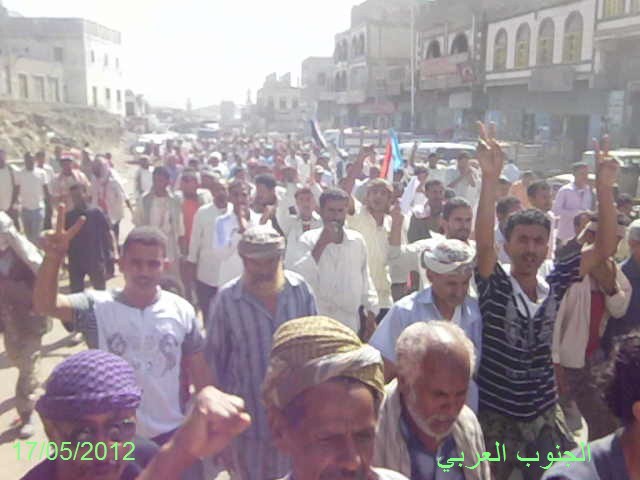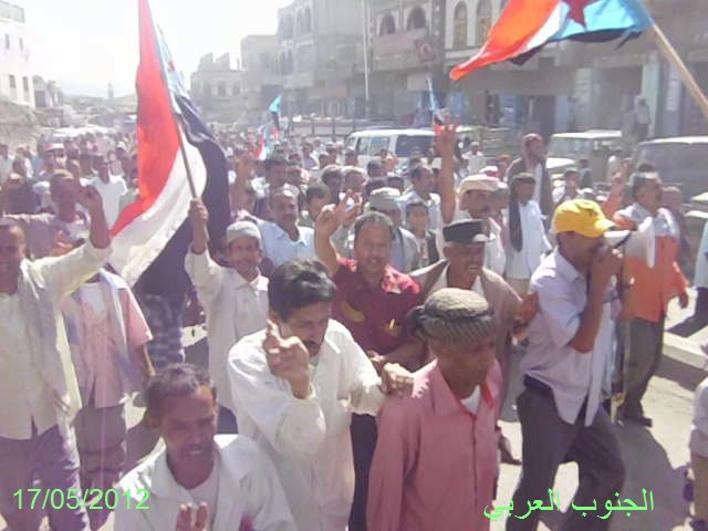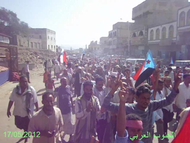 اقام مجلس الحراك السلمي والحركة الشبابية والطلابية واتحاد نساء الجنوب ومكونات المجتمع المدني من نقابات وجمعيات جنوبية في مديريتي الحوطة وتبن مسيرة جماهيرية حاشدة صباح اليوم الخميس 17/ 5/ 2012 م في مدينة الحوطة.