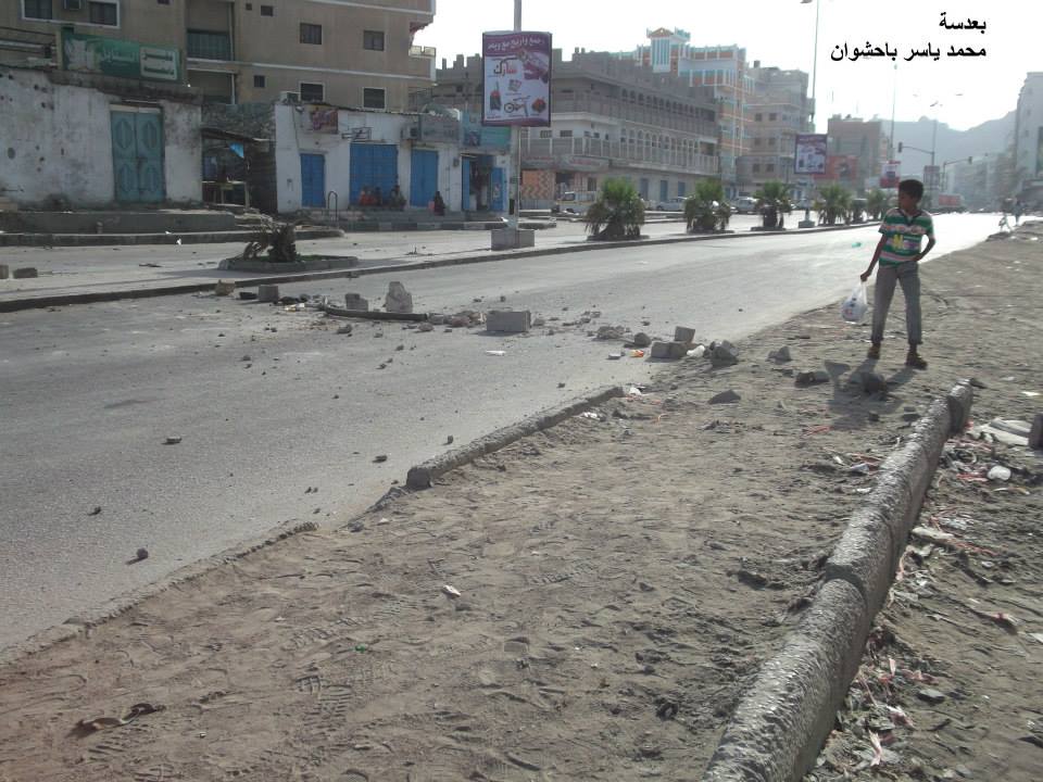 : كريتر تشهد الان انتشار كثيف ونا اكلمك من مكان كله قاذورات متخفي فيه من انظار جنود الاحتلال هناك مصفحات بجولة زكو ومصفحات واطقم لازالت تخرج من معسكر عشرين والاوضاع متوتره وكل كريتر محاصره