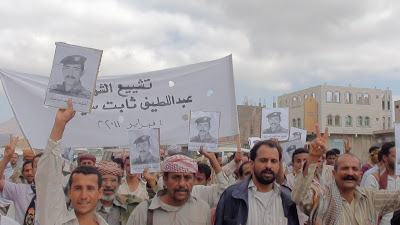 شوارع الحبيلين تمتلى بابنا الجنوب وهم يحملون صور الشهيد واعلام الجنوب وصور الرئيس البيض ويهتفون للحرية والاستقلال وطرد المحتل