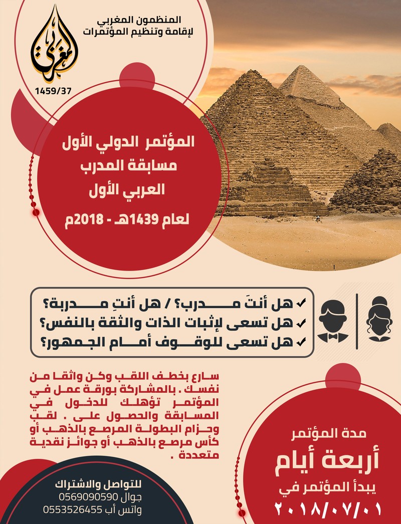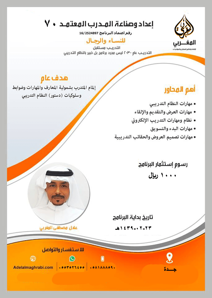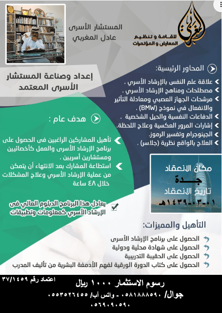 يقدم المغربي لإقامة وتنظيم المؤتمرات ورش العمل المعتمدة برقم (1459/37) - المطورة والحصرية والمخفضة - برسوم استثمار #1000# فقط ألف ريال – عن شهري صفر وربيع أول1439هـ - ولمدة خمسة أيام عن الورشة الواحدة - والتي ستعقد في مدينة جدة - للنساء والرجال مع ضمان الجودة وإحداث الأثر أولا/ ورشة عمل مدرب معتمد في تحليل خط اليد – 16 صفر رابط التسجيل http://goo.gl/forms/Si9ybIDmBP8Kq5DE2 ثانيا/ ورشة عمل إعداد وصناعة المدرب المعتمد – 23 صفر ورشة العمل التي تؤهلك للاشتراك بمسابقة المدرب العربي الأول شاهد الفيديو جرافيك http://www.youtube.com/watch?v=Z3zHzD4TnFU رابط التسجيل http://goo.gl/forms/1sb5CRAwxciIDQ9L2 ثالثا/ ورشة عمل إعداد وصناعة المستشار الأسري – 1 ربيع أول شاهد الفيديو جرافيك http://www.youtube.com/watch?v=amZT838QPf8 رابط التسجيل http://goo.gl/forms/QzpVMJP6T503Yi9O2 رابعا/ ورشة عمل مدرب معتمد في الكوتشنج – 8 ربيع أول رابط التسجيل http://goo.gl/forms/IlCLmJ60GPIBBCg12 خامسا/ ورشة عمل مهارات التسويق والبيع الإبداعي الحديث – 15 ربيع أول شاهد الفيديو جرافيك http://www.youtube.com/watch?v=kQMdpt1czKQ رابط التسجيل http://goo.gl/forms/dg6pa5fQR5hdxAmi1 أخيرا ومع الحدث المنتظر والأكبر والأول والفريد من نوعه المؤتمر الدولي الأول مع مسابقة المدرب العربي الأول2018م بالاشتراك بالمؤتمر قد تحصد العديد من الجوائز المتنوعة المعنوية والنقدية حصد لقلب المدرب العربي الأول بداية الانطلاق في: 01/07/2018م شاهد الفيديو جرافيك http://www.youtube.com/watch?v=i9RpdME8wCo رابط التسجيل وبقية المعلومات على الرابط http://goo.gl/forms/qwFecuEvCFfxk9Af1 رابط تحميل كتيب المؤتمر كاملا http://drive.google.com/file/d/0B1tW...ew?usp=sharing السيرة الذاتية للمدير التنفيذي عادل المغربي http://www.youtube.com/watch?v=nFZKQ8bMNB0 http://goo.gl/forms/BkQj0rU0Dnb2ARjk1 ====== رابط تحميل كتيب السيرة http://adelalmaghrabi.blogspot.com/2017/10/cv.html ===== جوال/ 0569090590 واتس أب/ 0553526455 |