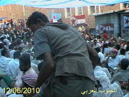 13 يونيو, 2010م كعادة الاوفياء للشهداء والوطن والتلاحم والتكاتف نحو الهدف السامي وهو ((الاستقلال)) ولليوم السادس على التوالي ودون كلل او ملل او خوف ورغم الحصار والاستفزاز للكثير من امواطنين الا انهم ابو واصروا على الوصول الى المخيم الذي يكتض كل يوم من بعد الضهر بالكثير من الزوار والمناضلين من الشباب والشيوخ والاطفال وفائا للشهداء ومؤانستا باسرهم وتكاتفهم وتراصهم ضد المحتل البغيض اكتض مخيم الشهداء الضالع اليوم 13/6/2010م بالكثير من المواطنين المنددين بتلك الجريمه البشعه ومن مختلف مديريات الضالع والجنوب . حضور جماهيري حاشد داخل المخيم , عزيمه وشموع وثبات كالجبال الراسيه ,,,,, فهنيئا لكم الشهاده ايها الابطال فانكم لا تزالون احياء بما سطرتموه لنا من تاريخ بطولي ... اليكم الصور من داخل مخيم الشهداء بالضالع وبعدسة المغوار شيبة الجنوب المرابط دائما : |